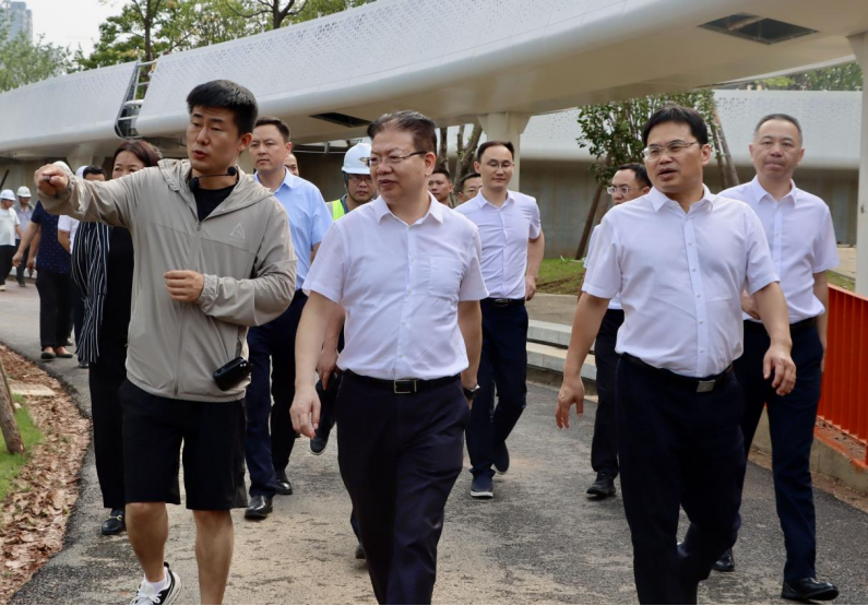 在西瓜山濕地公園項目現場,唐道明現場查看了社區污水管網建設改造、雨污分流改造、濕地公園黑臭水體治理等情況,對園內景觀大加贊賞,并對公園今后的運營和發展提出建設性意見。他指出,要加快推進城市黑臭水體治理工作,強化責任落實,切實扛起打贏水污染防治攻堅戰的政治責任;要理清治理思路,由單純治水轉向治污為本、水岸共治,因地制宜、綜合施策,統籌做好控源截污、追本溯源、內源治理、活水保質、生態修復、長效管理,切實提高群眾的參與感、獲得感。