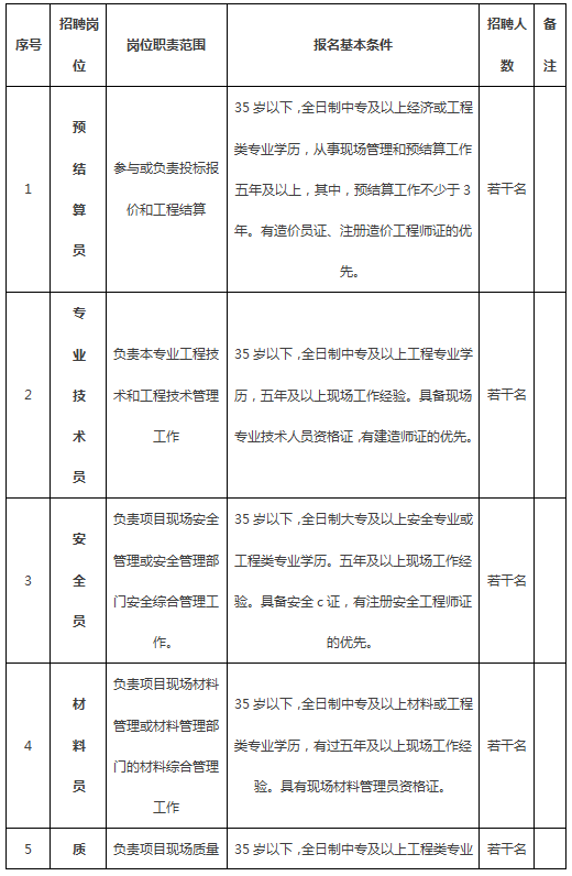 公示期滿后,按照中國化學工程第四建設有限公司有關規(guī)定辦理聘用手續(xù)。聘用人員試用期為6個月,試用期滿考察不合格者,解除聘用。