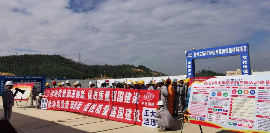 日前,華南公司惠州立拓項目開展以“推動質量變革創(chuàng)新、促進質量強國建設”為主題的2022年“質量月”活動啟動儀式。