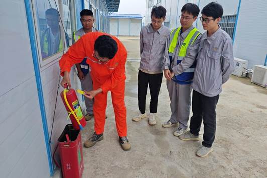 中化勞務公司岳化新材料項目、東北公司福州華能產投廠外工程項目團員青年組織開展高溫防中暑演練,模擬在高溫環境下作業時突發中暑的應急處置流程,確保項目職工在突發中暑情況下能夠迅速、有效地進行自救和互救。江西公司平煤項目團員青年組織開展火災應急疏散演練以及滅火器使用培訓,引領項目部職工掌握安全操作規范以及火災安全撤離方法。華南公司開陽中偉磷酸鐵項目團員青年組織開展防觸電安全應急演練,編制觸電事故應急預案,學習施工人員工作時意外觸電的正確救助方法,提升應對突發事件的應急處置能力和組織協調能力。