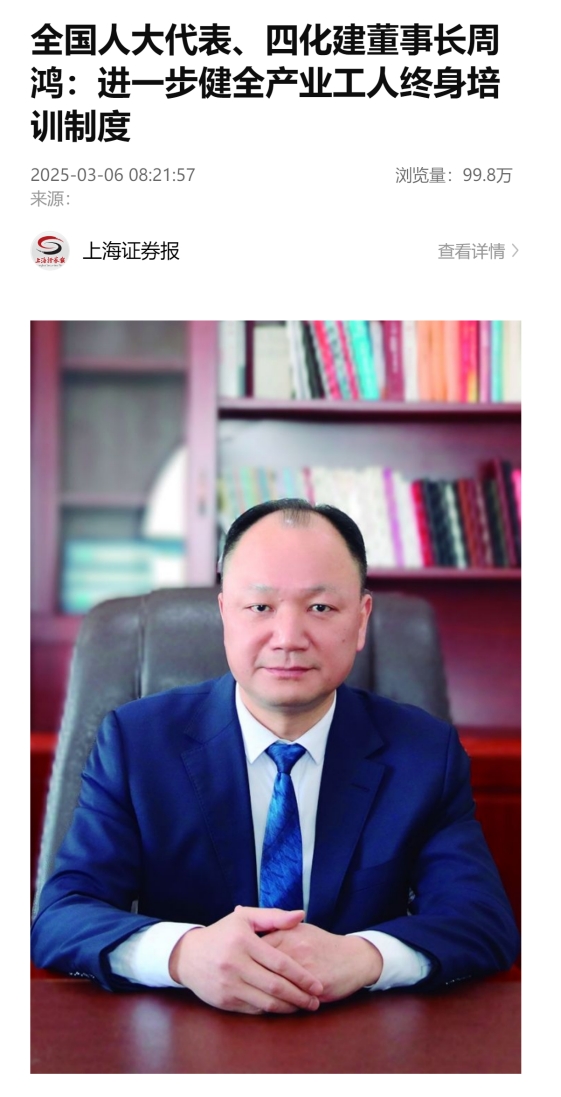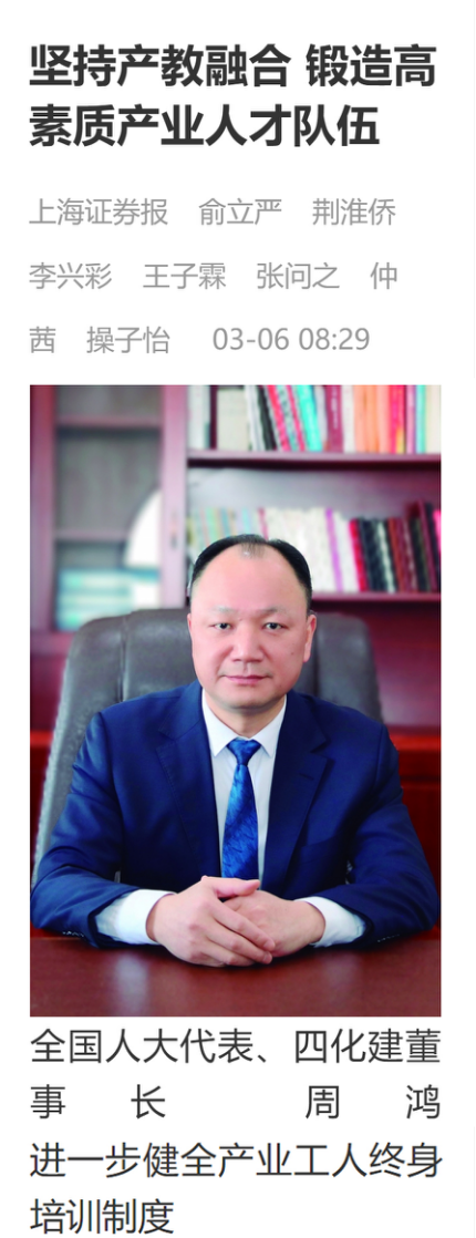 3月6日,證券時報客戶端以“堅持產(chǎn)教融合 鍛造高素質(zhì)產(chǎn)業(yè)人才隊伍”為題報道周鴻的建議:進一步健全產(chǎn)業(yè)工人終身培訓(xùn)制度。