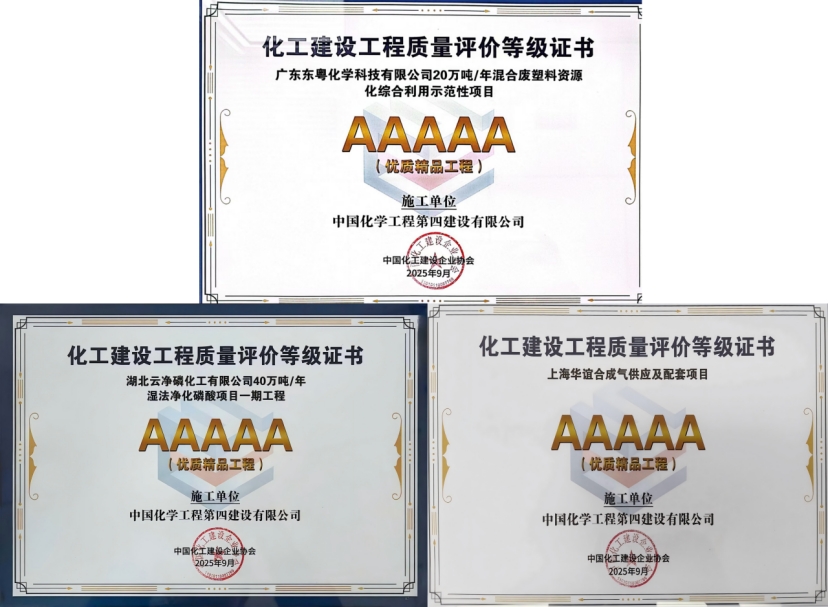 這11個獲獎項目分別為:華南公司承建的廣東東粵化學科技有限公司20萬噸/年混合廢塑料資源化綜合利用示范性項目,華東公司承建的上海華誼合成氣供應及配套項目,中南公司承建的湖北云凈磷化工有限公司40萬噸/年濕法凈化磷酸項目一期工程共3個項目憑借優良的工程品質、高效的施工組織和顯著的示范價值,榮獲全國化工建設工程5A級優質精品工程獎。