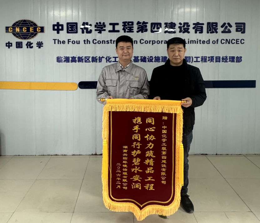 2月25日,湖南興臨環(huán)境治理有限公司向建筑工程公司臨湘項目部贈送“同心協(xié)力筑精品工程 攜手同行護碧水安瀾”錦旗,對臨湘高新區(qū)污水廠提能改造項目(一期)團隊的優(yōu)異表現(xiàn)給予高度肯定。