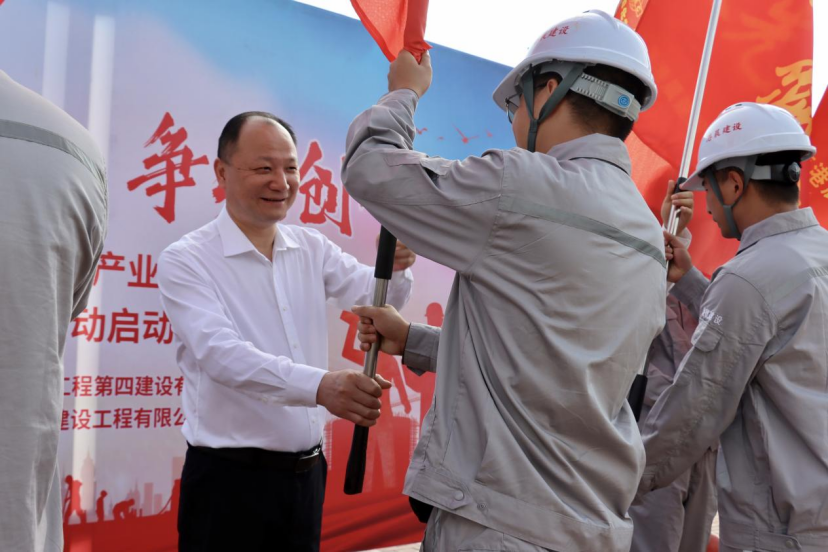 5月24日,公司在岳陽自貿片區數字經濟產業綜合體建設項目舉行2023年度勞動競賽啟動儀式,吹響“爭先創一流,決戰決勝實現百億化建目標”大干號角。公司黨委書記、董事長周鴻,工會主席、監事會主席胥正旺出席儀式,并為項目部“工人先鋒隊”“黨員先鋒隊”和“青年突擊隊”進行授旗。公司相關部門、港晨公司和項目部共140余人參加。
