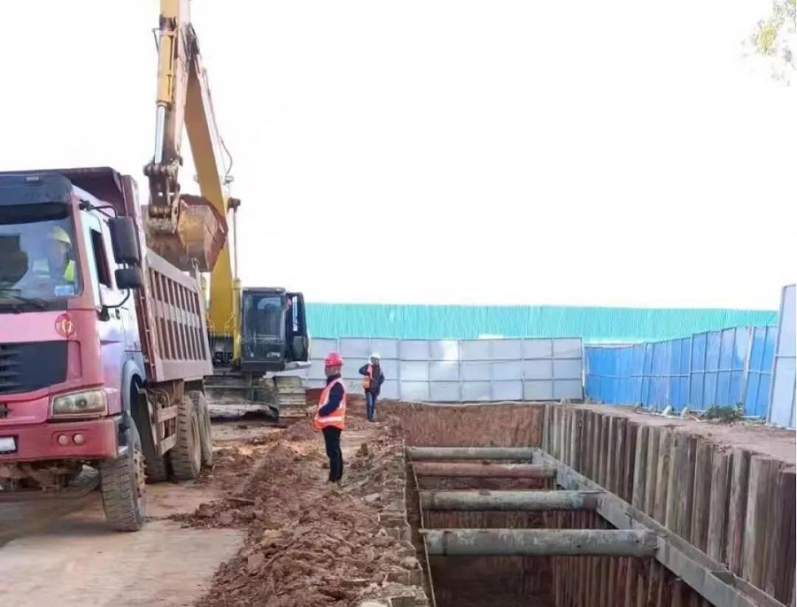 該工程為桔林路新建雨水管道,末端接入楊家壟路預(yù)留雨水檢查井,待建楊家壟路、虎形山路、蓮花路雨水管道完工后,可暢通湖濱大道雨水的排水出路,有效解決湖濱大道長(zhǎng)期積水問題。中南分公司項(xiàng)目部已于2021年10月底進(jìn)場(chǎng),并完成封圍擋與施工現(xiàn)場(chǎng)清表工作;進(jìn)入11月后,相繼開展旋挖引孔及鋼板樁施工。截止11月29 日,中南分公司片區(qū)已完成引孔4000米,鋼板樁施工3600米,溝槽開挖60米,并安排部署雨水混凝土涵管及污水克拉管安裝作業(yè)。