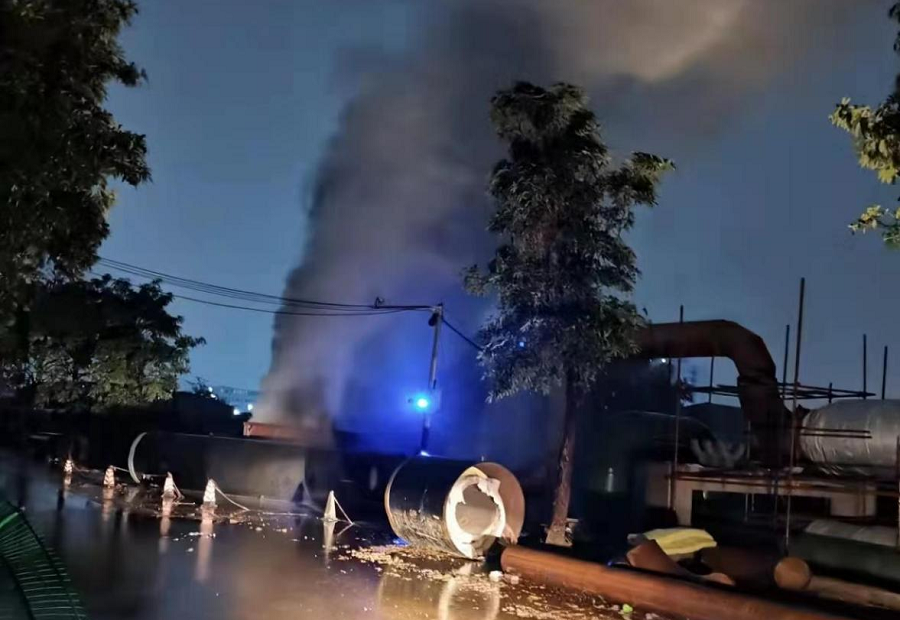 近日,華南公司東莞中堂熱電聯產二期熱網二期工程完成管道蒸汽吹掃工作。