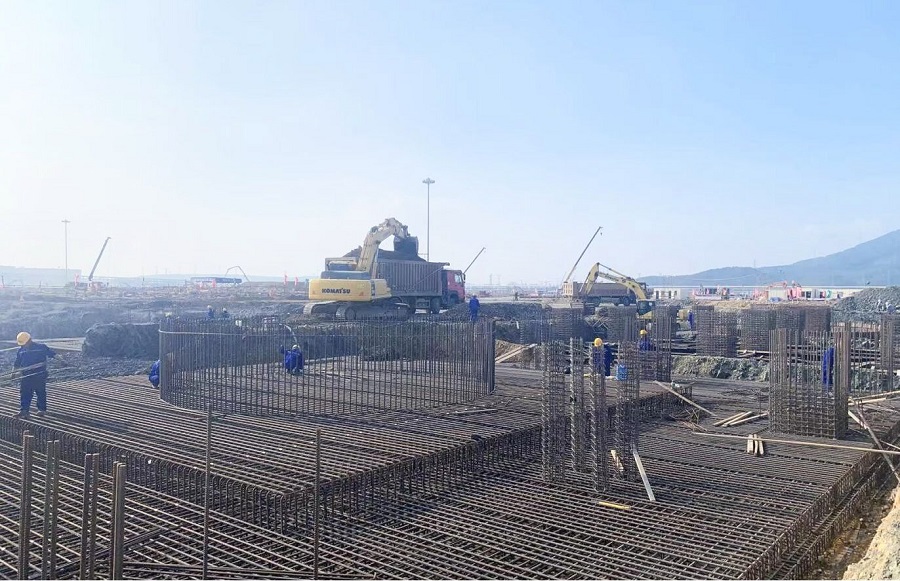 該裝置項(xiàng)目共有7個(gè)單元,自8月15日開工以來(lái),項(xiàng)目部克服工期時(shí)間緊、地質(zhì)巖石多、施工現(xiàn)場(chǎng)點(diǎn)多面廣、疫情防控難等諸多困難,全力搶抓進(jìn)度。截至目前,初期雨水池池壁鋼筋已綁扎完成,氧化提濃單元核心設(shè)備基礎(chǔ)承臺(tái)澆筑完成,精餾單元各框架基礎(chǔ)陸續(xù)施工,異丙苯單元大面積開挖,裝置變電所基礎(chǔ)柱、梁混凝土澆筑完成。項(xiàng)目部將充分利用好當(dāng)前晴好天氣,合理組織班組施工作業(yè),全力加快施工進(jìn)度,確保完成各項(xiàng)既定任務(wù),為黨的二十大勝利召開獻(xiàn)禮。
