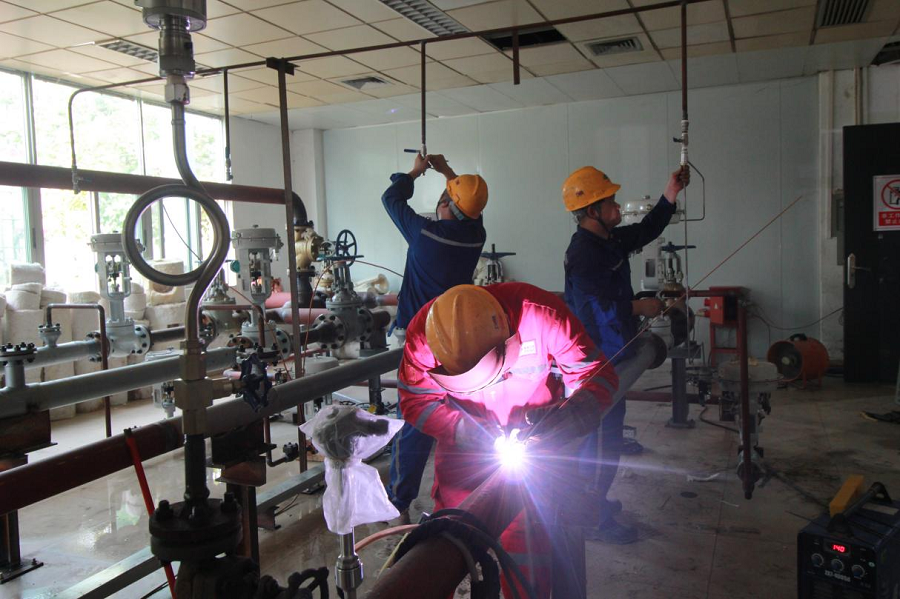 據(jù)了解,此次搶工包括11套流量計(jì)安裝,4套減溫減壓閥組裝,真空泵管道改建、上百組閥門安裝等。為確保優(yōu)質(zhì)高效完成施工任務(wù),項(xiàng)目克服人員不足、施工組織困難和疫情防控等不利因素,歷經(jīng)24小時(shí)連續(xù)施工,在9月21日?qǐng)A滿完成改建管道的拆除、恢復(fù)、回裝、試壓、吹掃及監(jiān)檢工作。