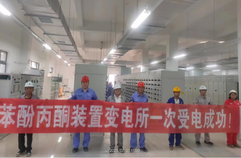 近日,由東北公司承建的大連恒力石化新材料項(xiàng)目苯酚丙酮裝置變電所一次受電成功。