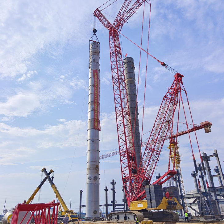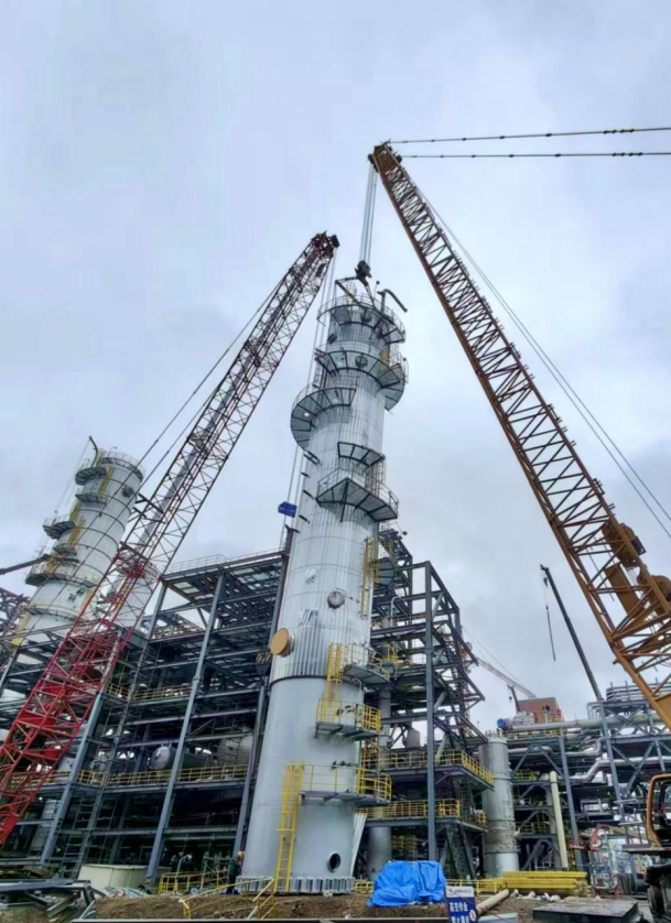 為響應(yīng)公司“奮戰(zhàn)四季度、決勝雙百億”號召,中秋國慶雙節(jié)期間,項目部全體人員堅守施工一線,確保項目吊裝等各項工作穩(wěn)步推進。此次吊裝的輕組分塔規(guī)格為Φ3636×59100、設(shè)備自重123噸,重組分塔規(guī)格為Φ3940×65800、設(shè)備自重175噸,是項目主裝置的關(guān)鍵設(shè)備。