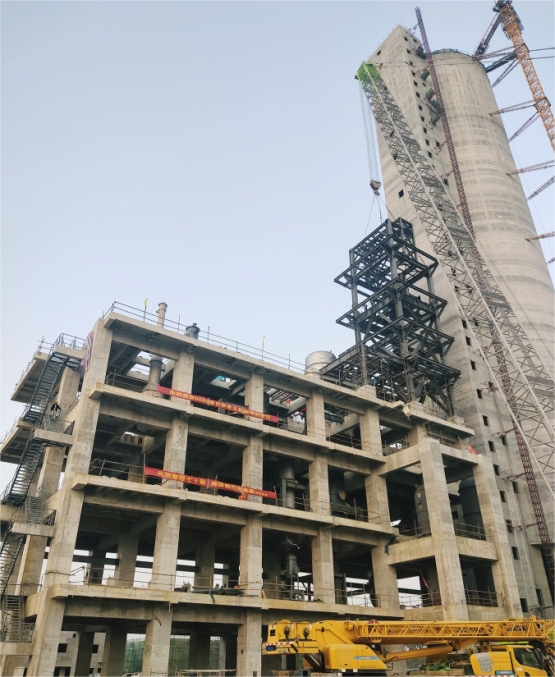 華北公司河南晉開(kāi)延化項(xiàng)目尿素主框架封頂