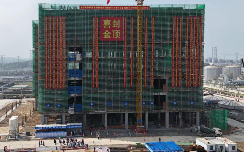 中化勞務(wù)公司岳化新材料項目主裝置聚合廠房封頂