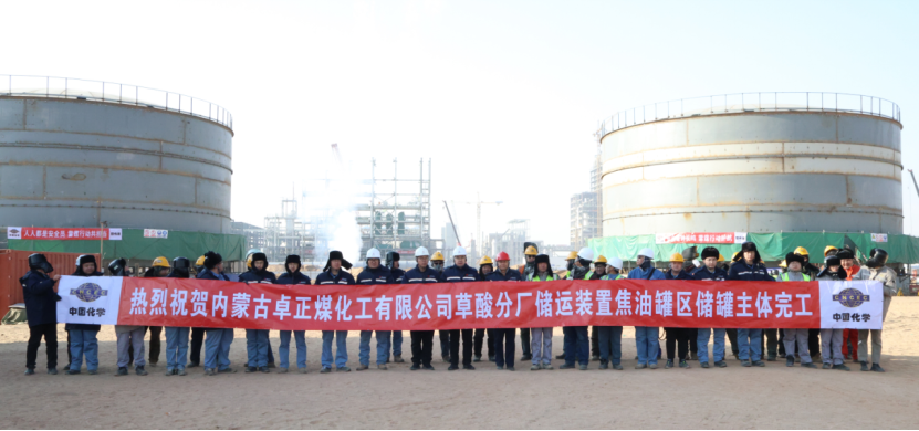 西部公司內蒙古卓正煤化工項目焦油罐區主體結構完工