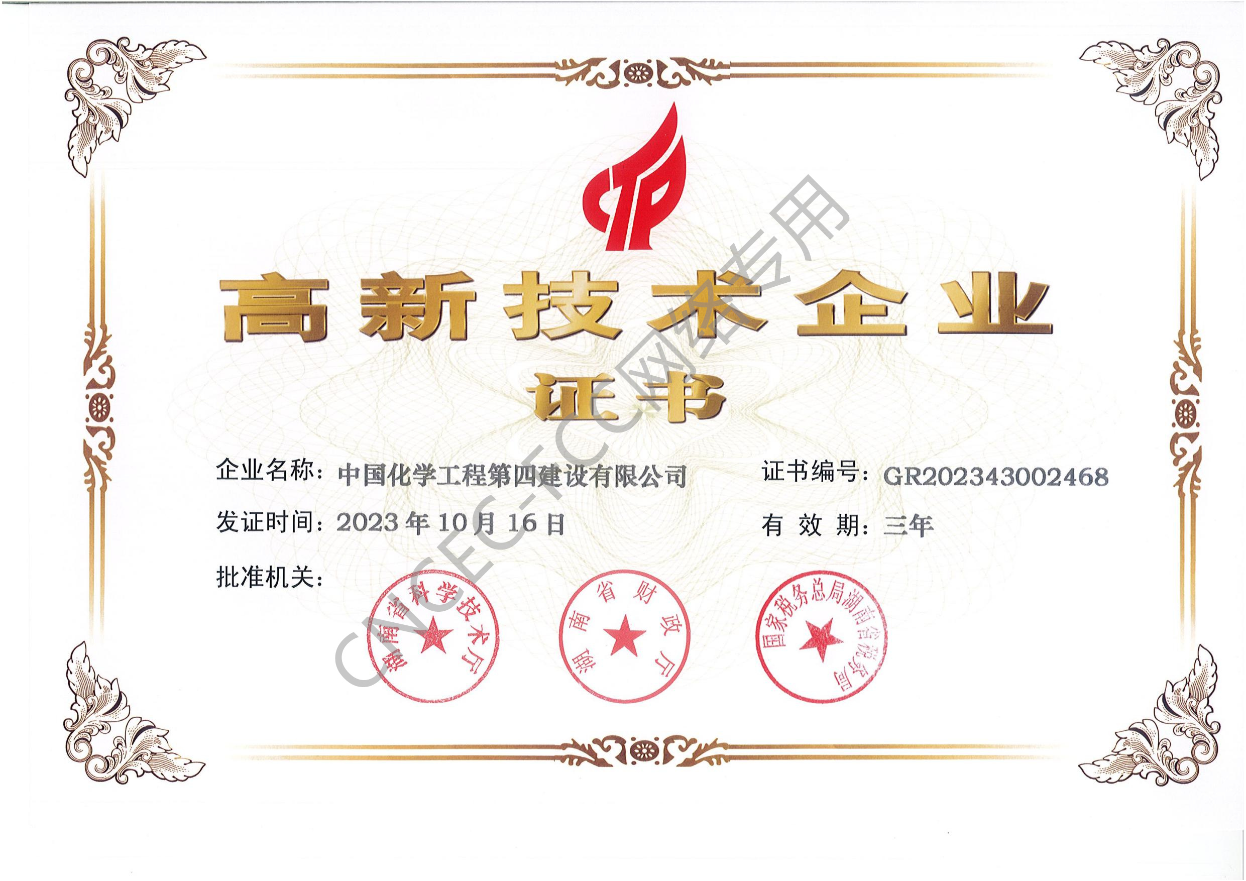 高新技術企業證書